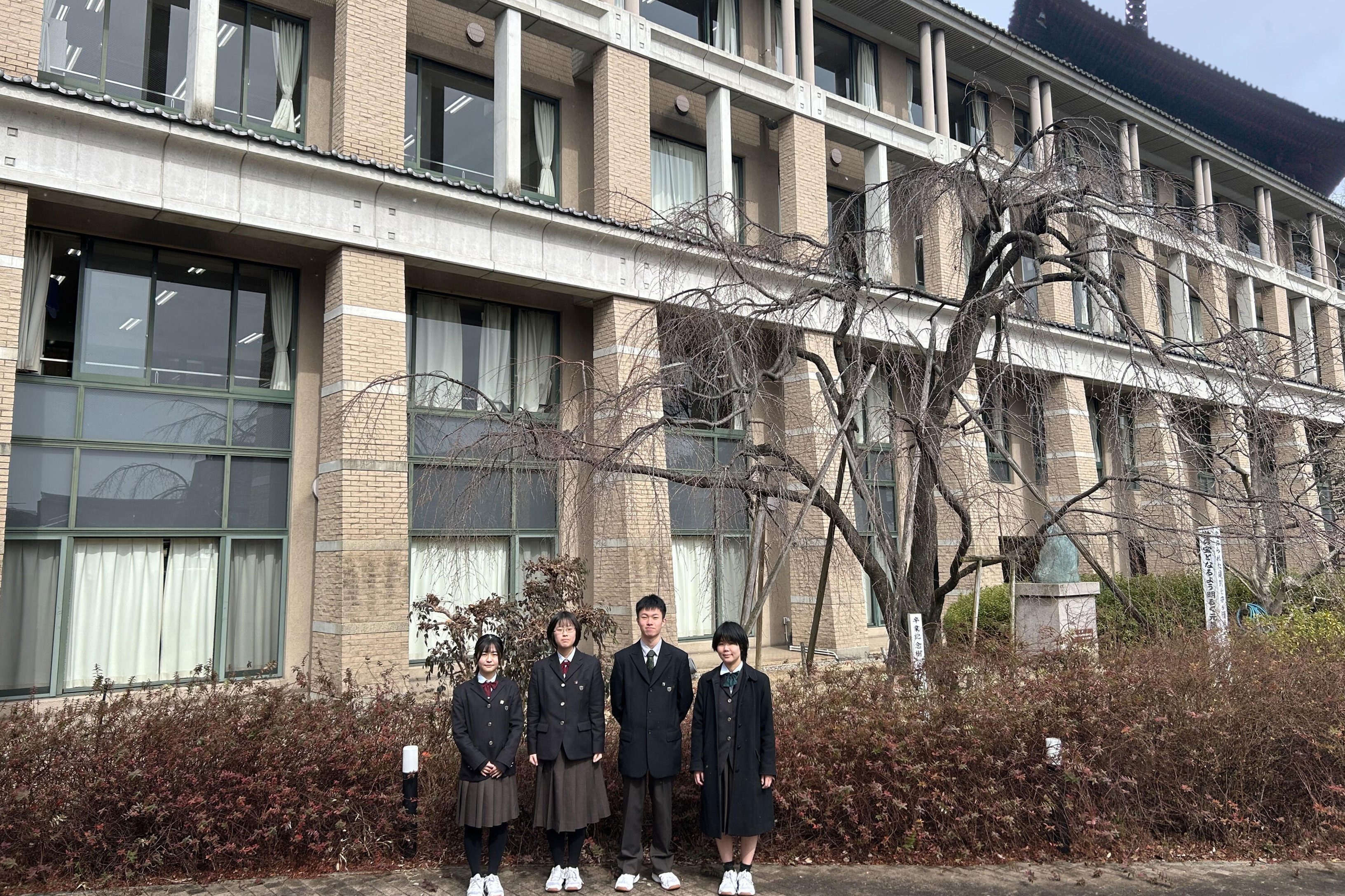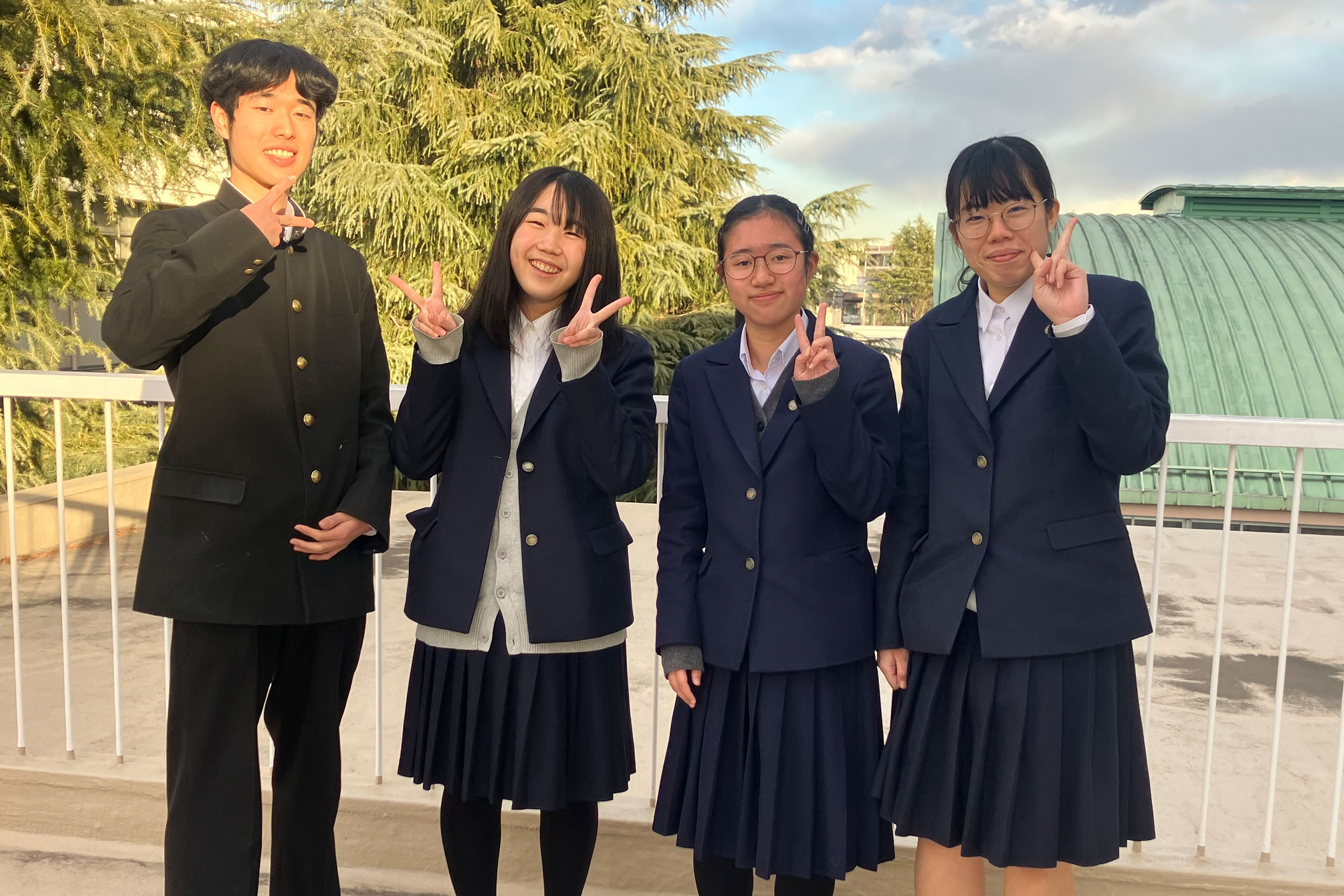 本校は、生徒の三分の二が帰国生の国際色豊かな学校で、自由な校風と豊かな自然環境のもとのびのびと過ごしています。本好きの有志4人で参加します。全国の皆さんと本について議論することを楽しみにしています。よろしくお願いします!
