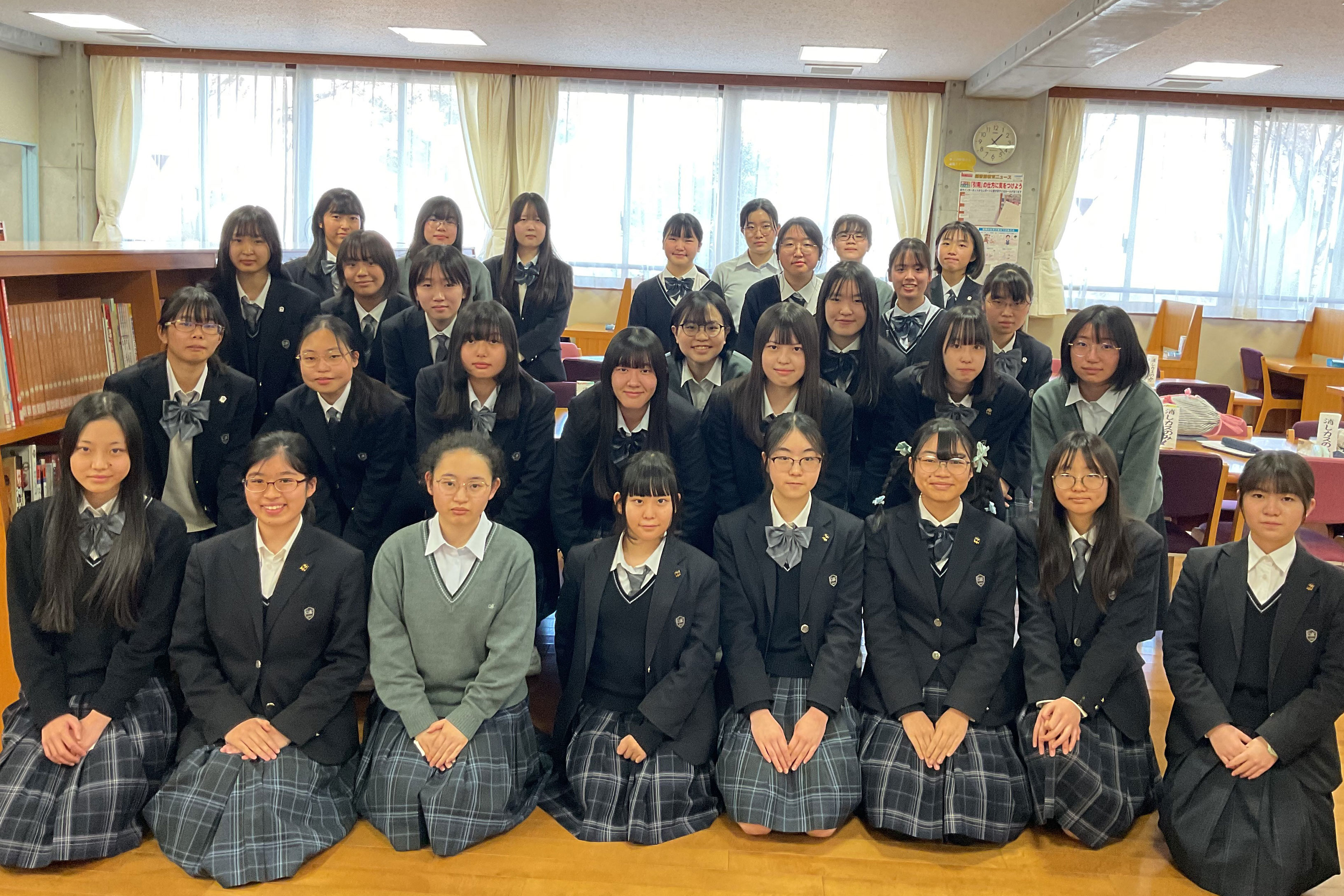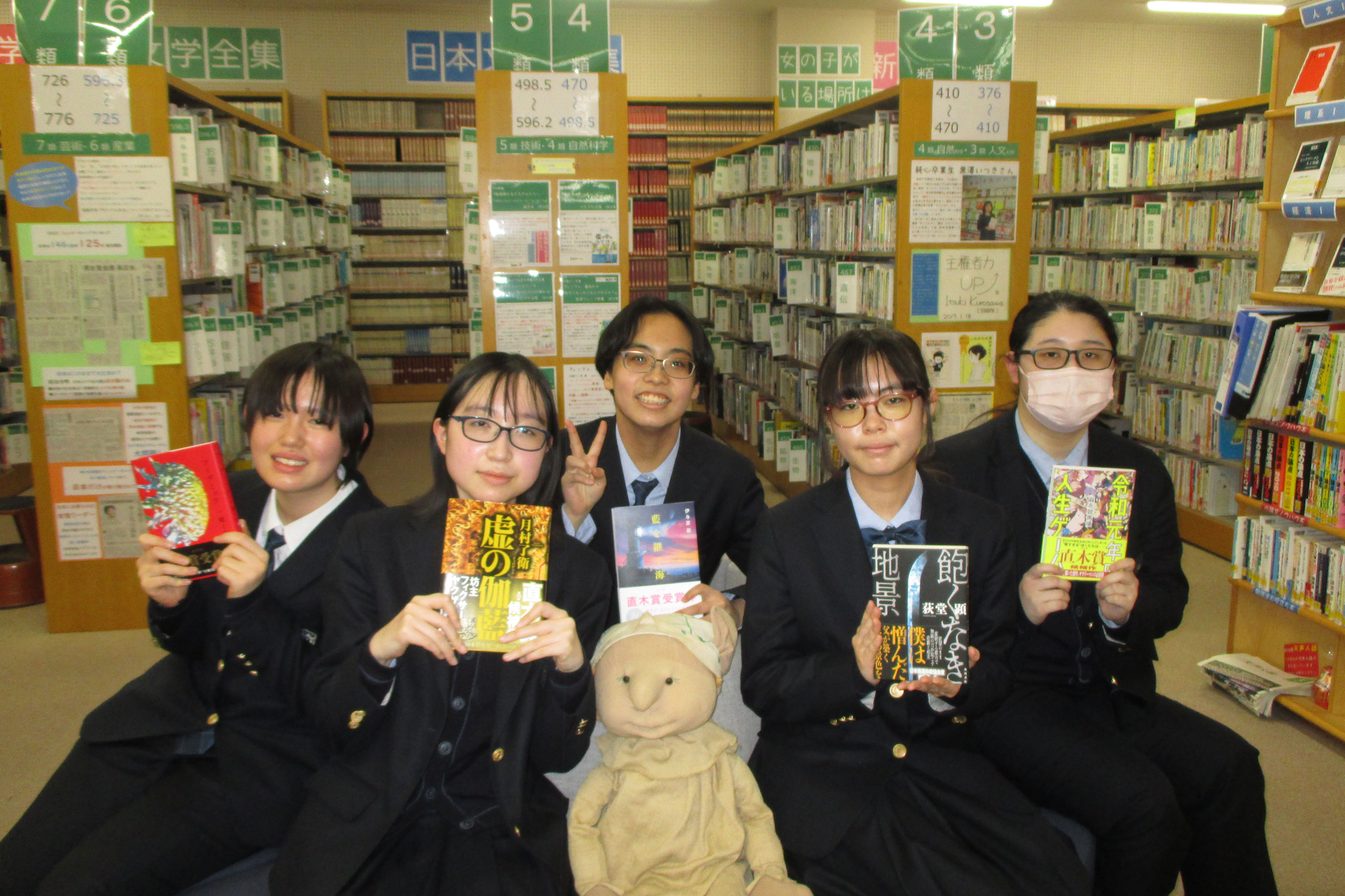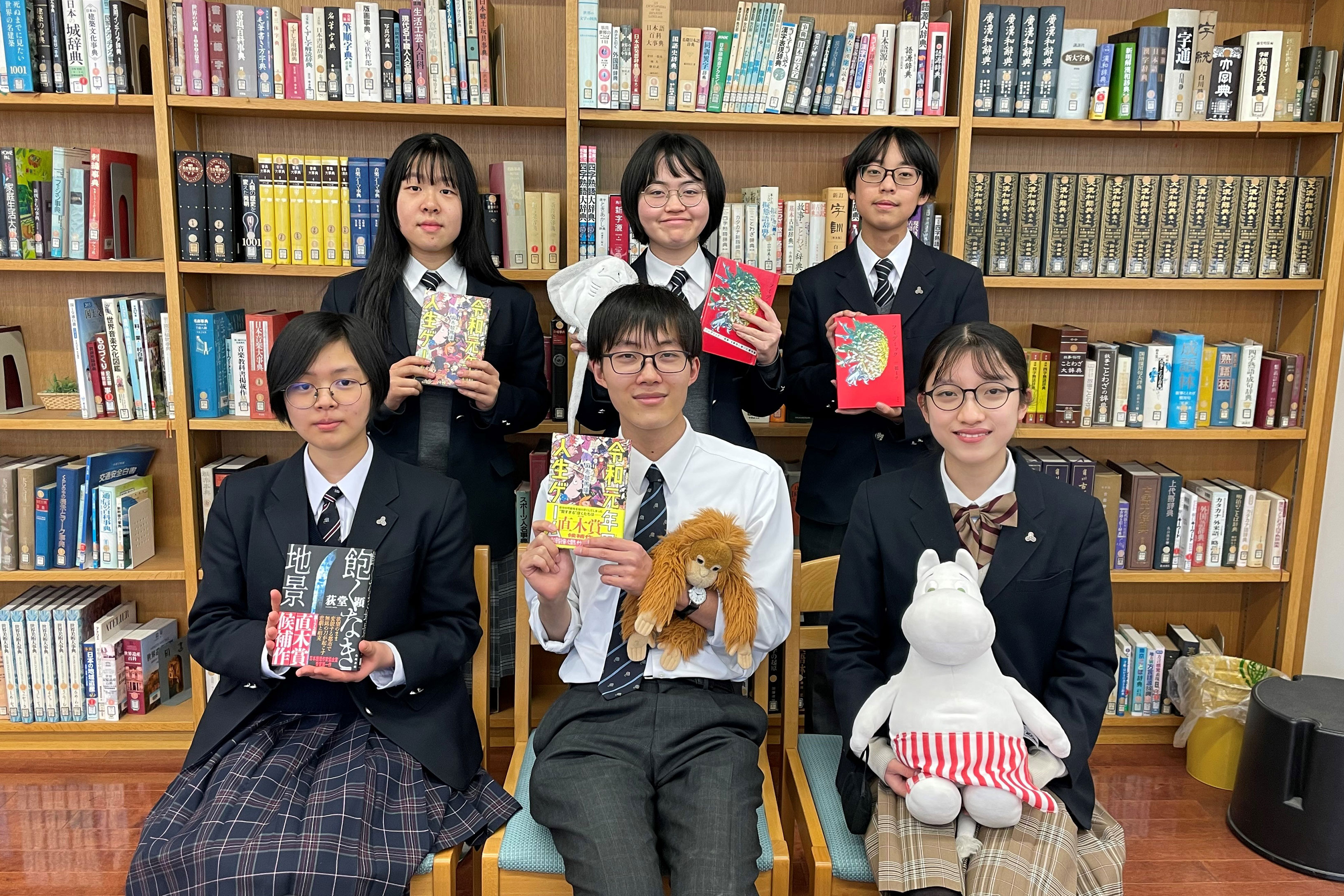 本校は長崎に設置母体のあるカトリックミッションスクールで、平和教育に特色があります。小規模校ながら、図書館棟に中学図書館、高校図書館という特色の異なる2つの図書館が併設され、在校生はどちらも利用できます。高校生直木賞への参加が4回目となる今年は、全国の参加校のみなさまとの討議や交流を5人のメンバーが楽しみにしています。